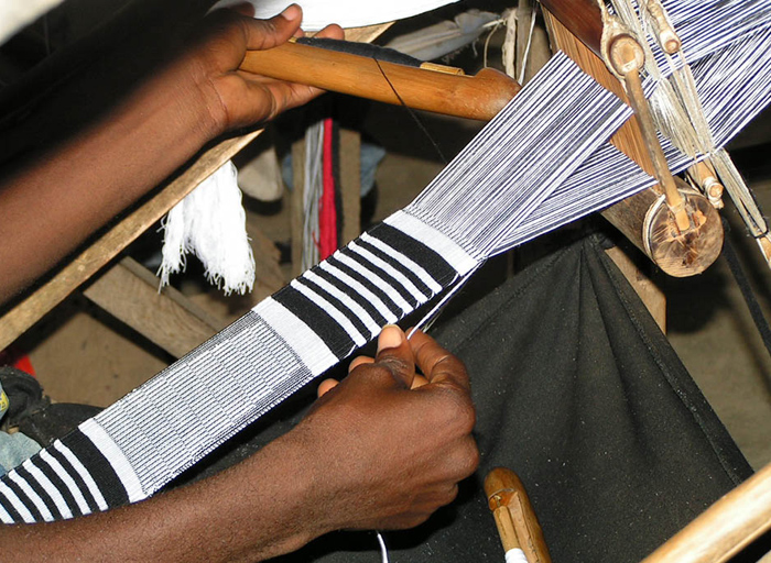 Kente refers to a Ghanaian textile made of hand-woven strips of silk and cotton. Historically the fabric was worn in a toga-like fashion by royalty among the Ewe and Akan. According to Ashanti oral tradition, it originated from Bonwire in the Ashanti region of Ghana.